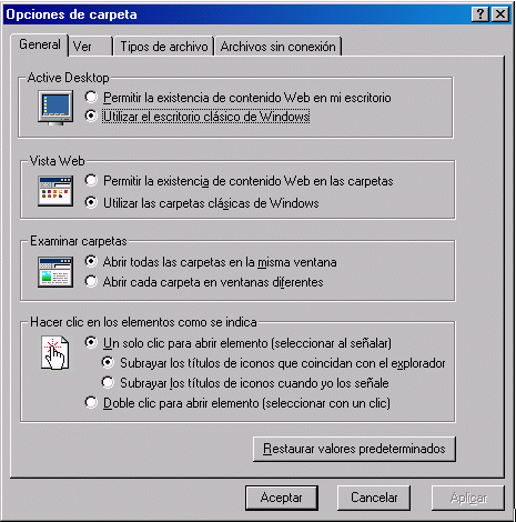 y seleccionar la opción Utilizar carpetas clásicas de Windows,